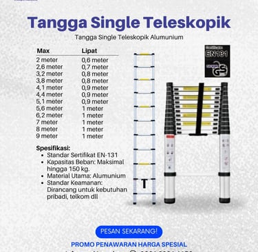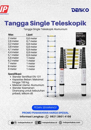 Investasi pada alat kerja yang aman tidak harus mahal. Di indoperkakas.com, Anda bisa mendapatkan Tangga Single Teleskopik Denko original dengan harga yang sangat kompetitif, mulai dari kisaran 1 jutaan.