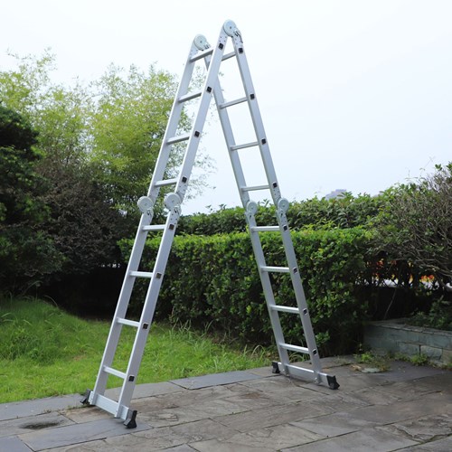 Ketinggian Bentuk A (A-Frame): Ditekuk menjadi bentuk "A" (berdiri sendiri), ketinggian maksimal yang dapat dicapai adalah sekitar 3,4 meter. Posisi ini sangat ideal untuk pekerjaan interior seperti mengganti lampu, mengecat dinding, atau memasang tirai, karena menjamin stabilitas tanpa perlu bersandar pada tembok.